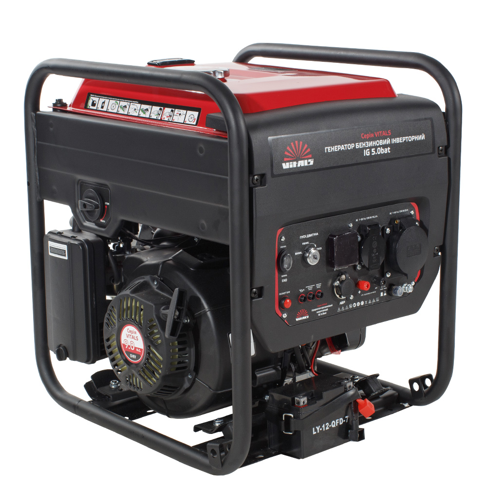 Бензиновий інверторний генератор Vitals IG 5.0bat — це сучасний компактний переносний електричний агрегат, призначений для резервного або аварійного живлення побутових споживачів. Він виробляє однофазний змінний струм із правильною (чистою) синусоїдою напругою 230 В та частотою 50 Гц.