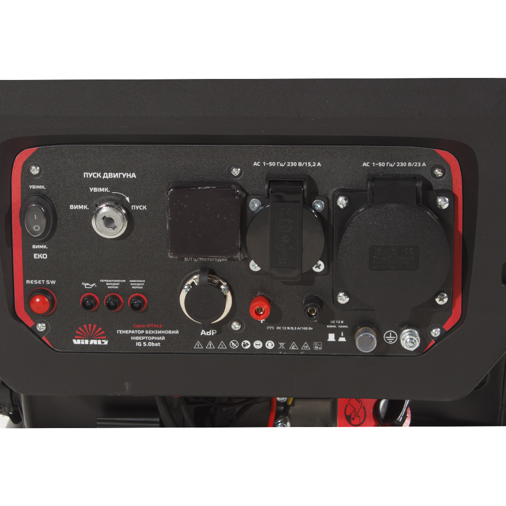 Генератор Vitals IG 5.0bat оснащений роз'ємом для підключення блоку автоматичного вводу в резерв (ATS), що дозволяє автоматично запускати генератор і передавати навантаження на нього при вимкненні основного джерела живлення та автоматично зупиняти генератор при відновленні електропостачання.