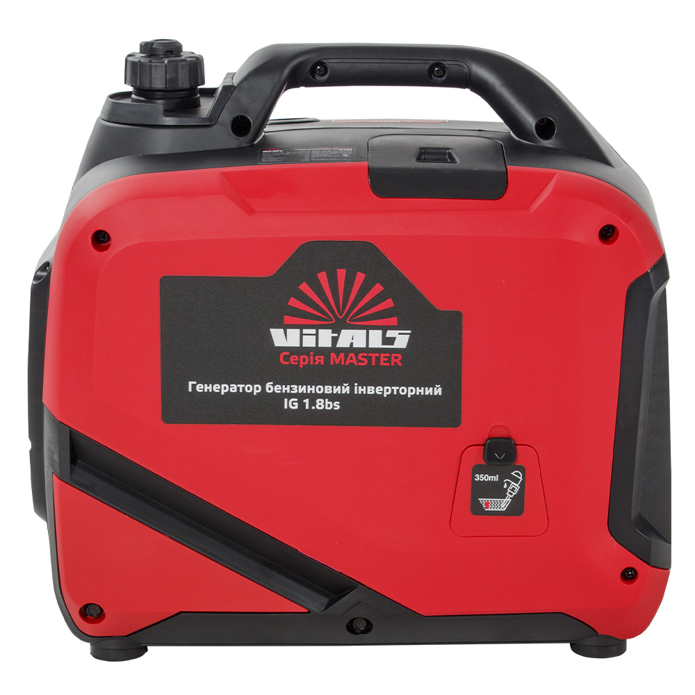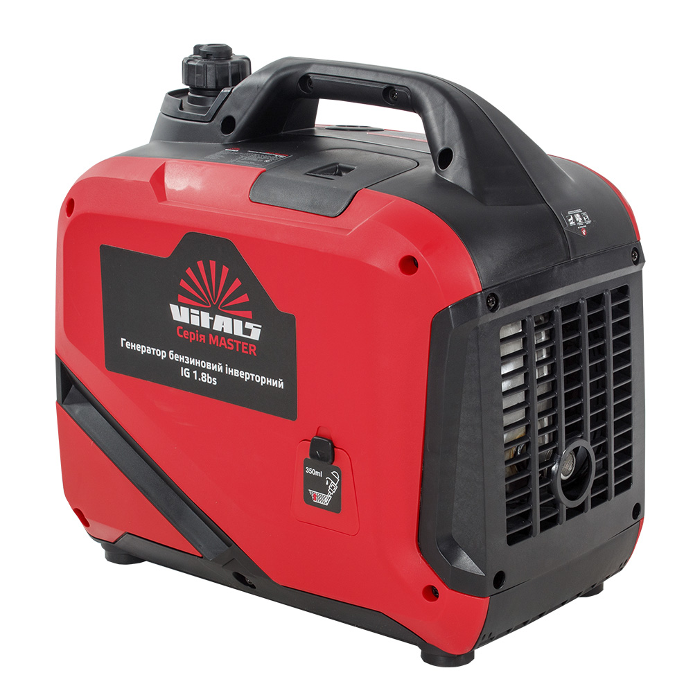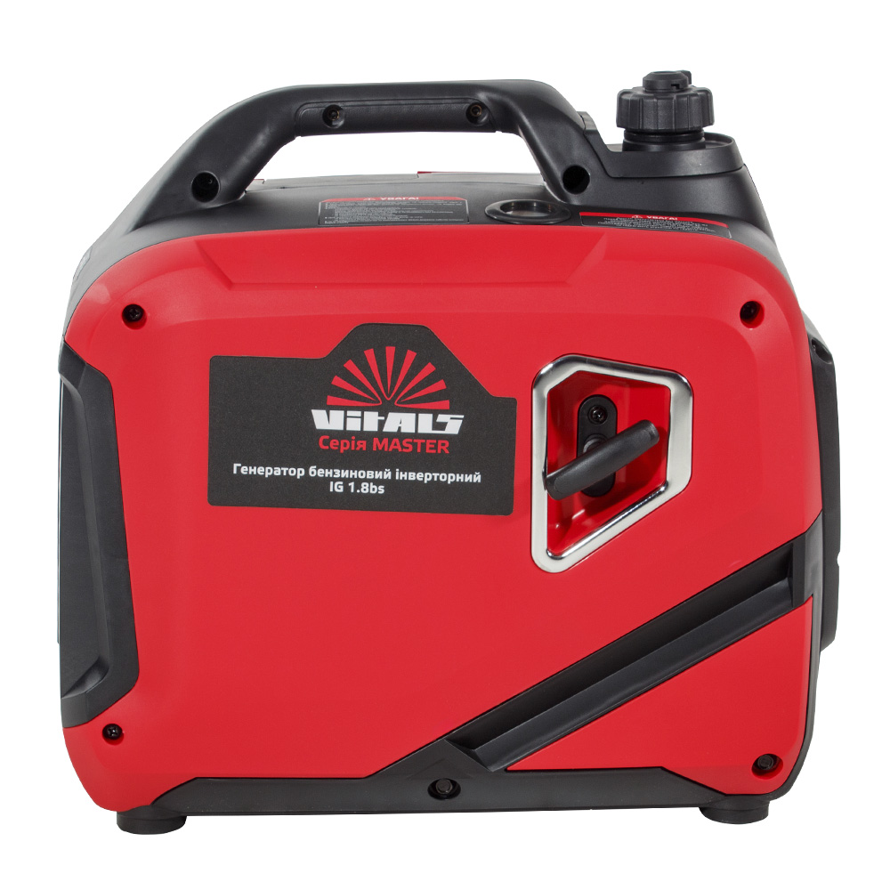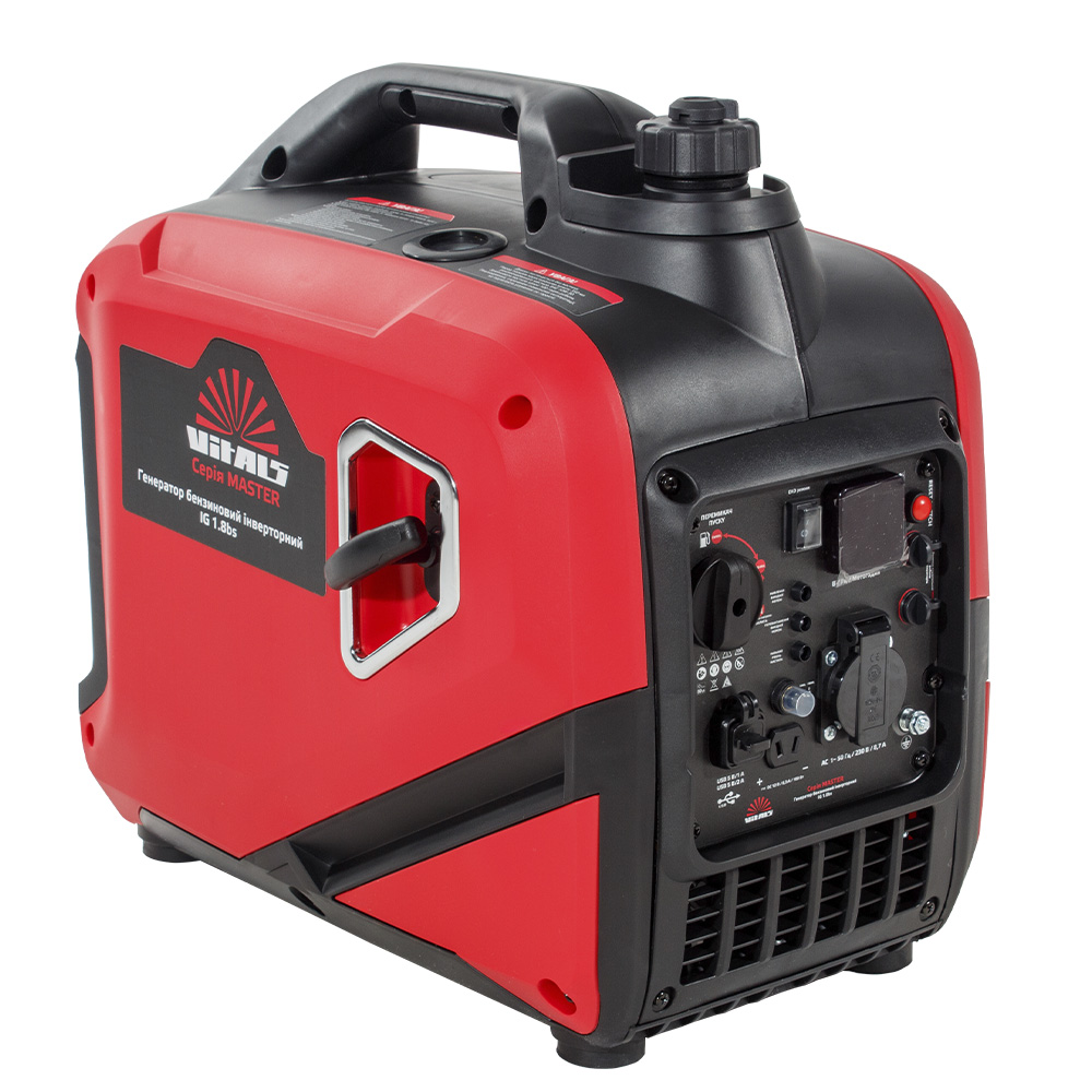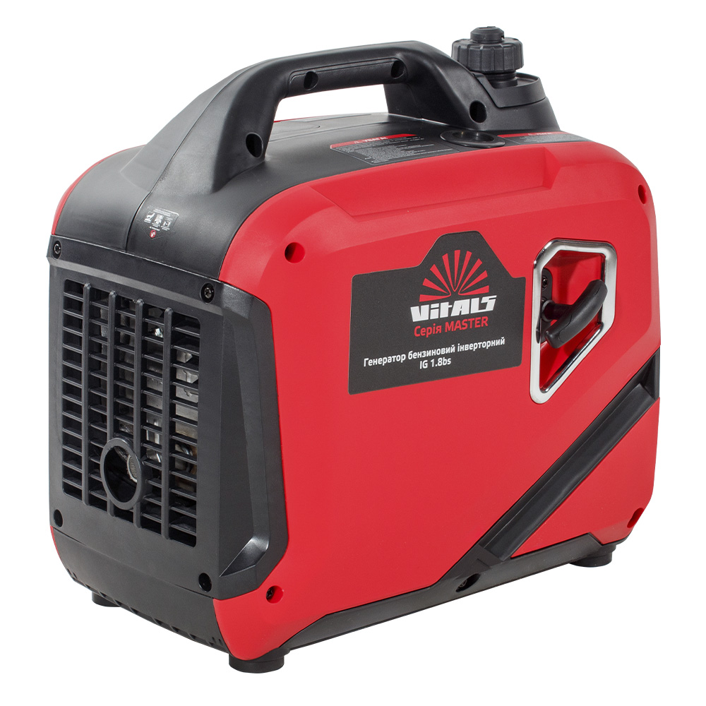 Бензиновий інверторний генератор Vitals Master IG 1.8bs — сучасний компактний переносний електрогенератор, призначений для резервного або аварійного живлення побутових пристроїв. Він виробляє однофазний змінний струм із правильною (чистою) синусоїдою з напругою 230 В і частотою 50 Гц.