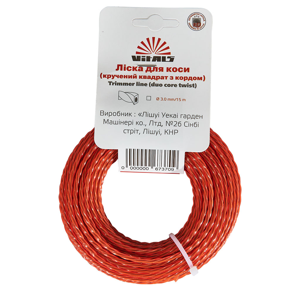 Ліска для тримерів Vitals (кручений квадрат із кордом) 3.0мм*15м